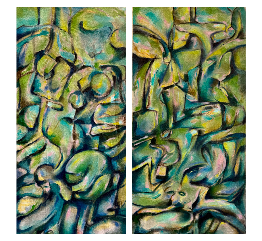 Maria Patino, No Judgment Diptych, Acrylic on canvas, 32 x 15"